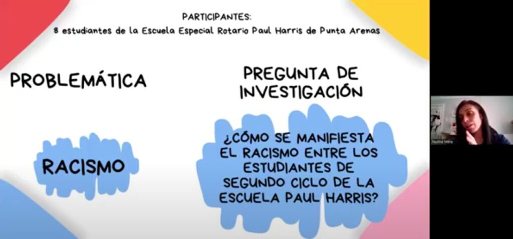 Por su parte, Paulina nos presentó una inspiradora investigación-acción participativa realizada en la Escuela Especial Rotario Paul Harris de Punta Arenas. En este proyecto, fueron sus estudiantes con discapacidad intelectual quienes identificaron la problemática a investigar: el racismo en la escuela. Se convirtieron en protagonistas del proceso, decidiendo los métodos de recolección de datos (focus groups) y analizando los resultados. Entre sus conclusiones, destacaron que las actitudes discriminatorias de los adultos son un precedente clave para las conductas que se replican en la escuela. Este trabajo demuestra que es posible y enriquecedor realizar investigaciones con los estudiantes, generando un espacio de confianza donde todos pueden aprender del otro.